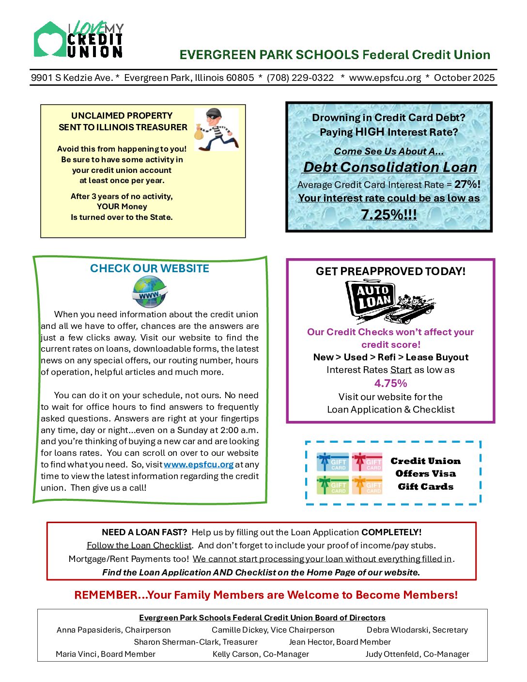 By Judy Ottenfeld Posted October 2, 2025 In October 2025 Newsletter2025-10-022025-10-02https://www.epsfcu.org/wp-content/uploads/2018/09/epsfculogotwotonegreen.jpgEvergreen Park Schools Federal Credit Unionhttps://www.epsfcu.org/wp-content/uploads/2018/09/epsfculogotwotonegreen.jpg200px200px Recent PostsSecrets Car Dealers Don’t Want You to Know…But We Do!Reasons Why You Need a Beneficiary on Your AccountUnderstanding Roth IRAsHow to Spot a Fake Check